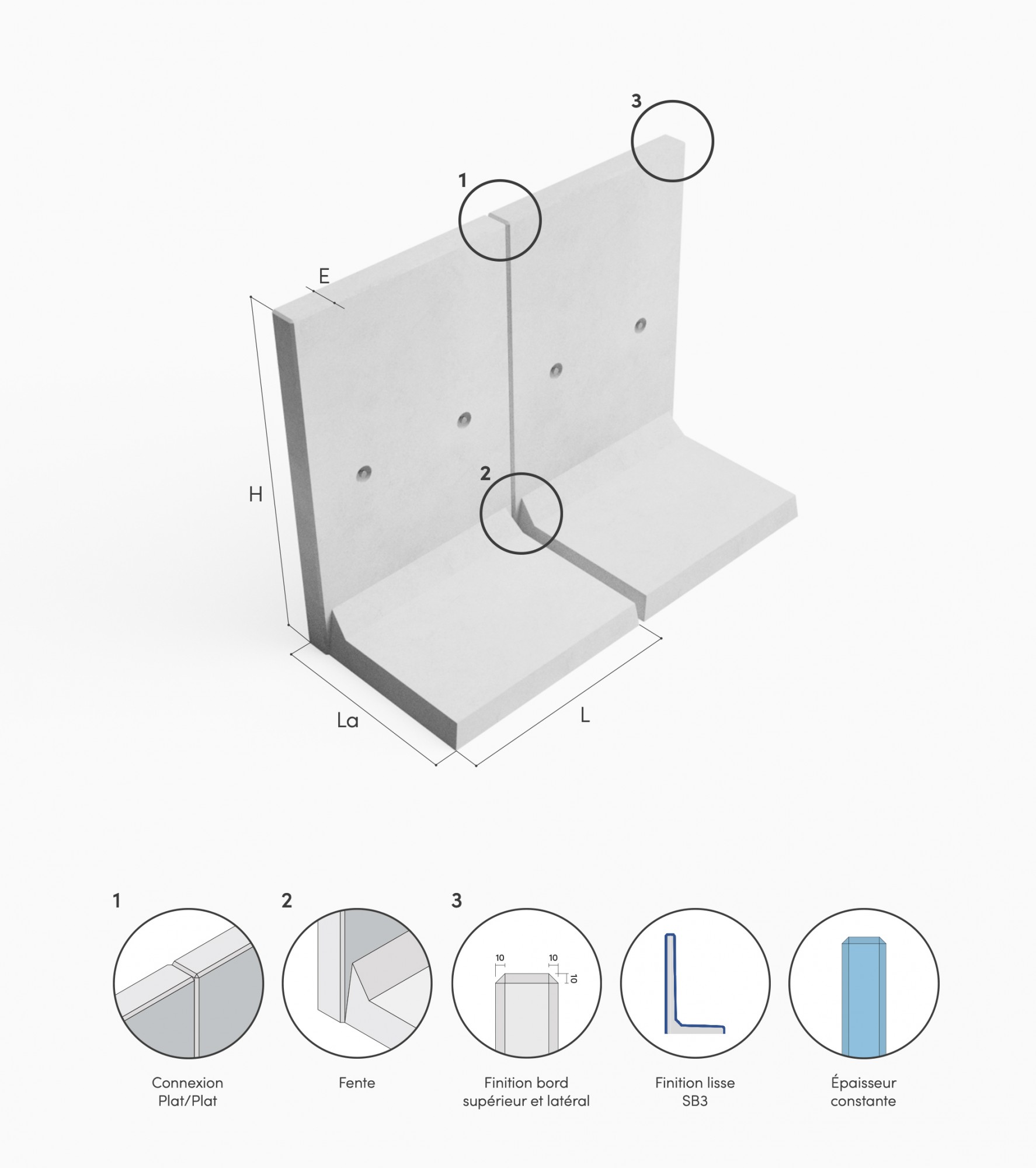 Le mur de soutènement Deluxe est unique et spécialement conçu pour l'aménagement paysager. En effet, il ne se contente pas de s'adapter aux petites et grandes différences de hauteur. Grâce à sa conception détaillée et à sa finition impeccable, il est également agréable à regarder. Plusieurs aspects ont été pris en compte lors de la conception de la chaussée L Deluxe. La finition lisse des deux côtés et l'épaisseur constante de la paroi la rendent particulièrement attrayante. En outre, un raccord plat permet de combiner les murs de soutènement de différentes manières.